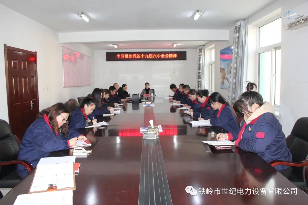 12月11日下午,鐵嶺市世紀電力設備有限公司黨支部在二樓會議室召開專題會議,傳達學習貫徹黨的十九屆六中全會精神,公司黨支部書記、總經理劉慧潔主持會議并講話,公司黨支部副書記閆紅煒、部分黨員代表出席會議。劉慧潔表示,黨的十九屆六中全會是在我們...